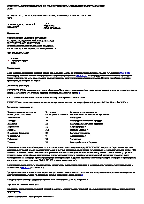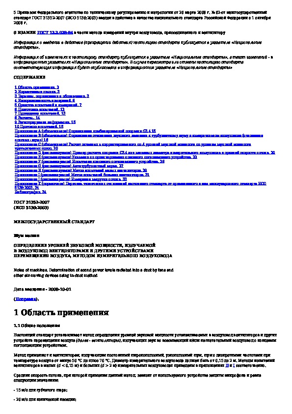 ГОСТ 31352-2007: Шум машин. Определение уровней звуковой мощности, излучаемой в воздуховод вентиляторами и другими устройствами перемещения возду