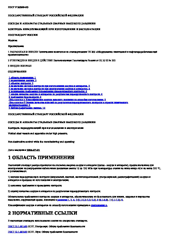 Наша цель состоит в том, чтобы предоставить вам быстрый доступ к содержанию документа Сосуды и аппараты стальные сварные высокого давления. Контроль неразрушающий при изготовлении и эксплуатации.