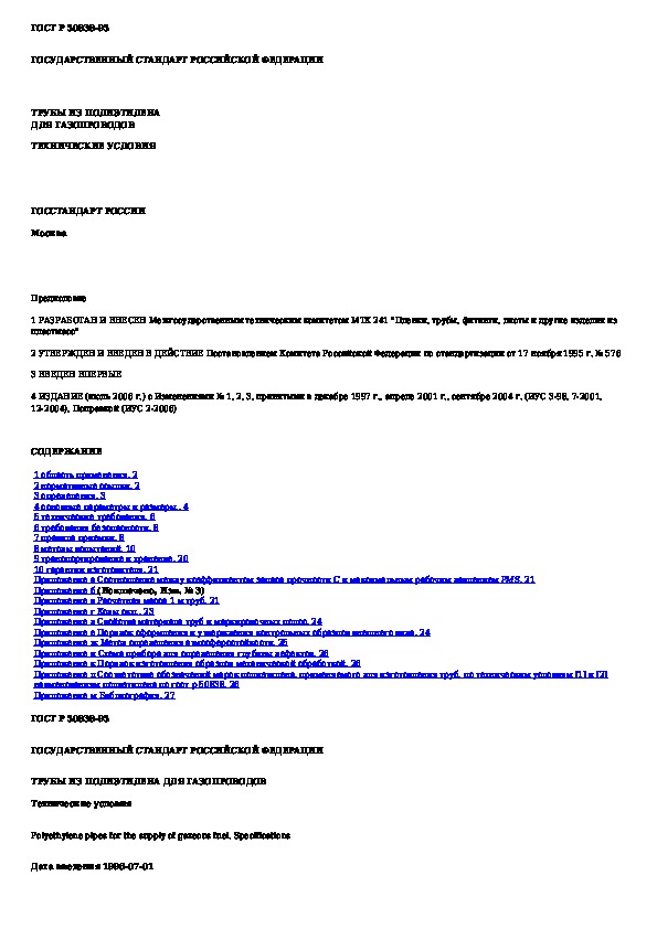 Наша цель состоит в том, чтобы предоставить вам быстрый доступ к содержанию документа Трубы из полиэтилена для газопроводов. Технические условия.