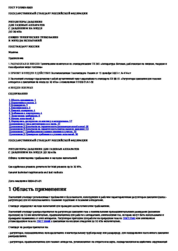 • Просмотр в полноэкранном режиме - легко просмотреть документ Регуляторы давления для газовых аппаратов с давлением на входе до 20 кПа. Общие технические требования и методы испытаний (без загрузки его на свой компьютер).
