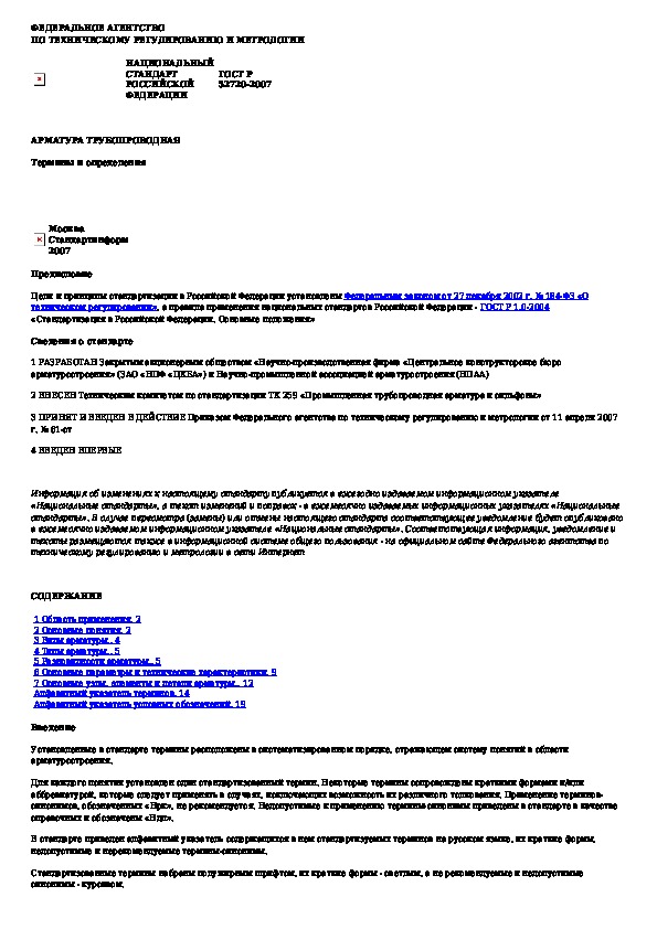 Наша цель состоит в том, чтобы предоставить вам быстрый доступ к содержанию документа Арматура трубопроводная. Термины и определения.