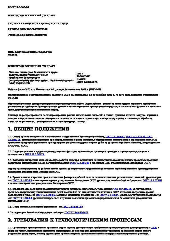 ГОСТ 12.3.003-86: Система стандартов безопасности труда. Работы электросварочные. Требования безопасности