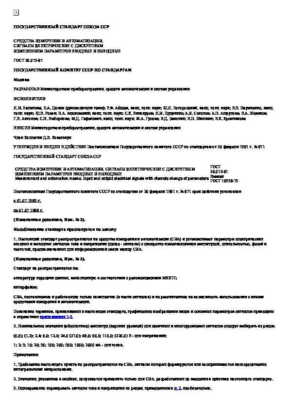 Наша цель состоит в том, чтобы предоставить вам быстрый доступ к содержанию документа Средства измерения и автоматизации. Сигналы электрические с дискретным изменением параметров входные и выходные.