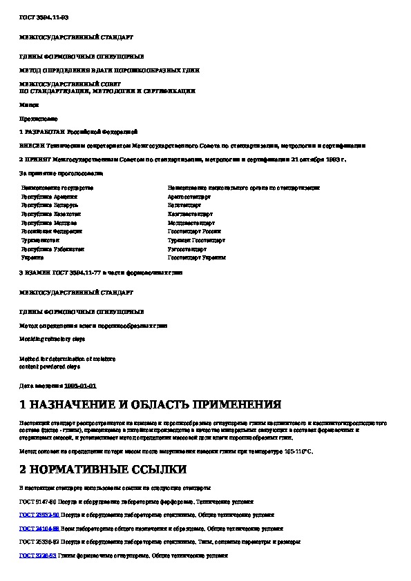 Наша цель состоит в том, чтобы предоставить вам быстрый доступ к содержанию документа Глины формовочные огнеупорные. Метод определения влаги порошкообразных глин.