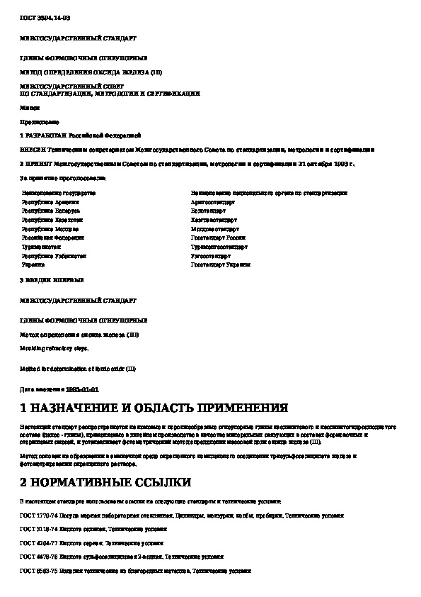 Наша цель состоит в том, чтобы предоставить вам быстрый доступ к содержанию документа Глины формовочные огнеупорные. Метод определения оксида железа (III).