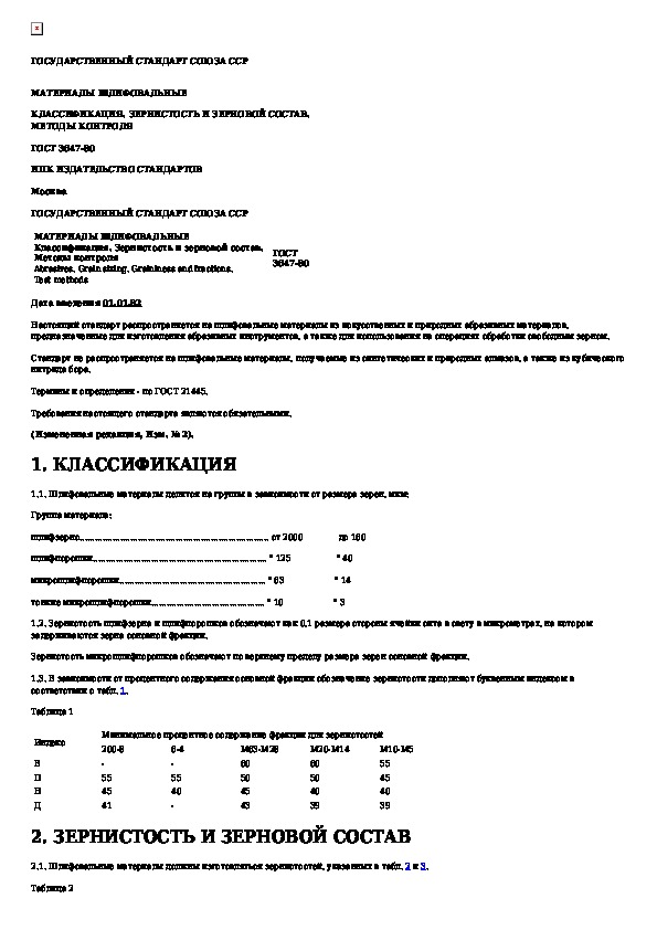 ГОСТ 3647-80: Материалы шлифовальные. Классификация. Зернистость и зерновой состав. Методы контроля