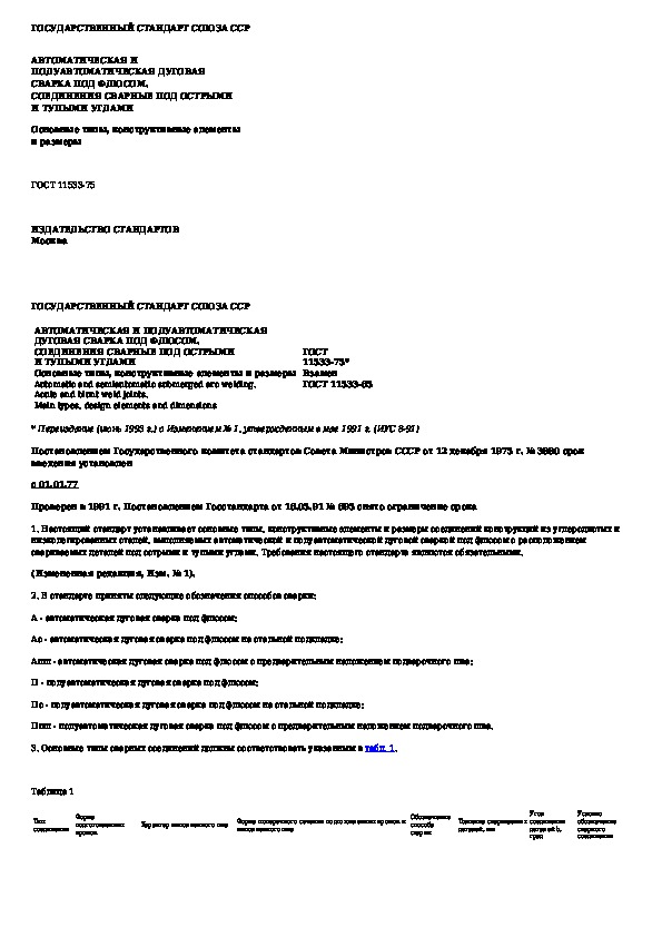 ГОСТ 11533-75: Автоматическая и полуавтоматическая дуговая сварка под флюсом. Соединения сварные под острыми и тупыми углами. Основные типы, кон