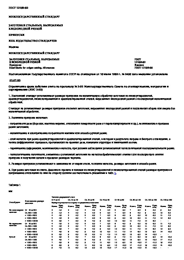 ГОСТ 12169-82: Заготовки стальные, вырезаемые кислородной резкой. Припуски