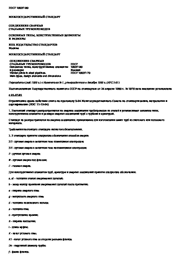 ГОСТ 16037-80: Соединения сварные стальных трубопроводов. Основные типы, конструктивные элементы и размеры