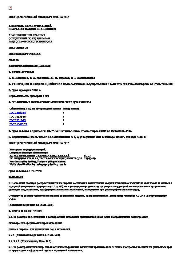 ГОСТ 23055-78: Контроль неразрушающий. Сварка металлов плавлением. Классификация сварных соединений по результатам радиографического контроля