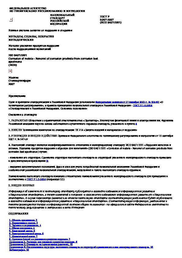 Наша цель состоит в том, чтобы предоставить вам быстрый доступ к содержанию документа Единая система защиты от коррозии и старения. Металлы, сплавы, покрытия металлические. Методы удаления продуктов коррозии после ко.