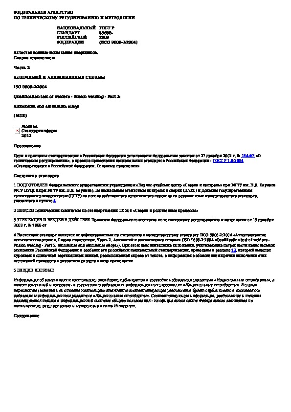 Наша цель состоит в том, чтобы предоставить вам быстрый доступ к содержанию документа Аттестационные испытания сварщиков. Сварка плавлением. Часть 2. Алюминий и алюминиевые сплавы.