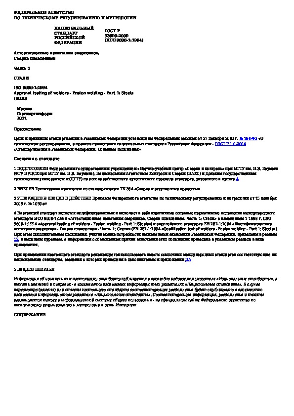 Наша цель состоит в том, чтобы предоставить вам быстрый доступ к содержанию документа Аттестационные испытания сварщиков. Сварка плавлением. Часть 1. Стали.