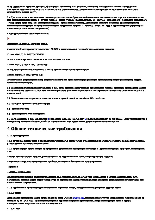 ГОСТ 30735-2001: Котлы отопительные водогрейные теплопроизводительностью от 0,1 до 4,0 МВт. Общие технические условия