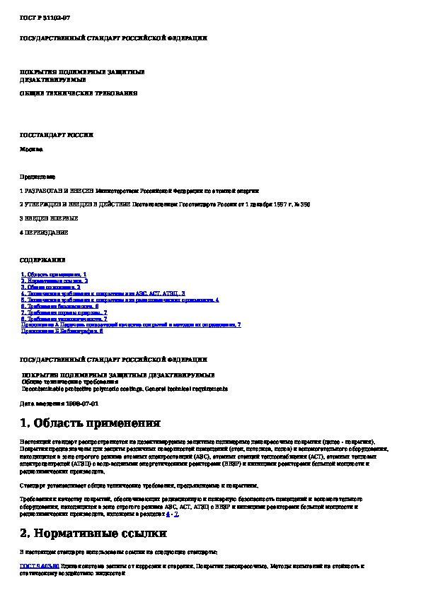 Наша цель состоит в том, чтобы предоставить вам быстрый доступ к содержанию документа Покрытия полимерные защитные дезактивируемые. Общие технические требования.