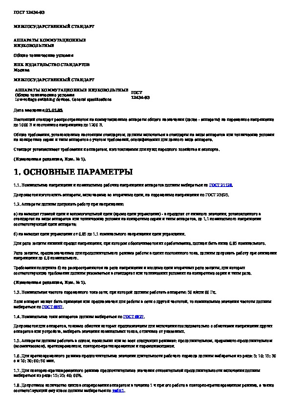 ГОСТ 12434-83: Аппараты коммутационные низковольтные. Общие технические условия