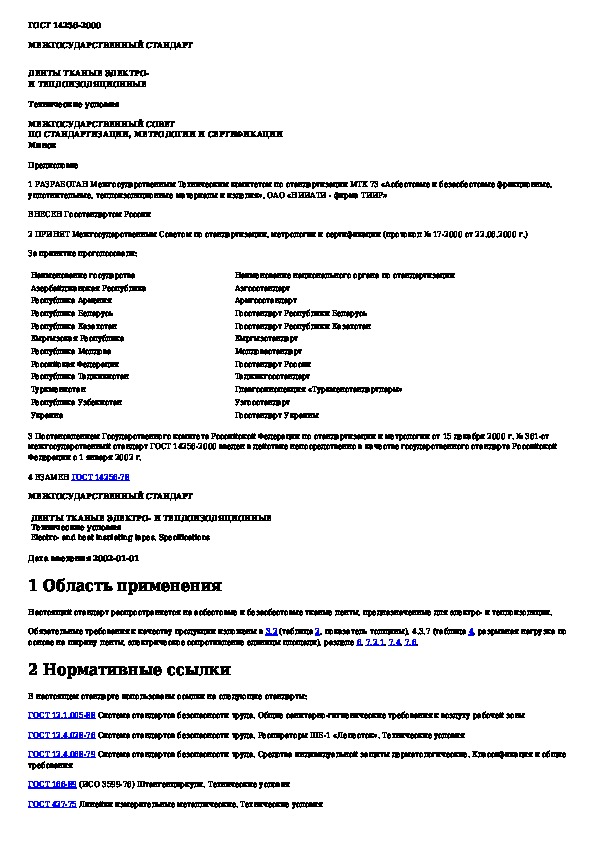 ГОСТ 14256-2000: Ленты тканые электро- и теплоизоляционные. Технические условия
