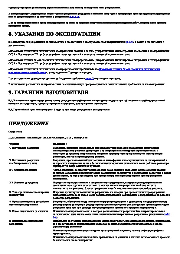 Наша цель состоит в том, чтобы предоставить вам быстрый доступ к содержанию документа Разрядники вентильные переменного тока на номинальные напряжения от 3,8 до 600 кВ. Общие технические условия.