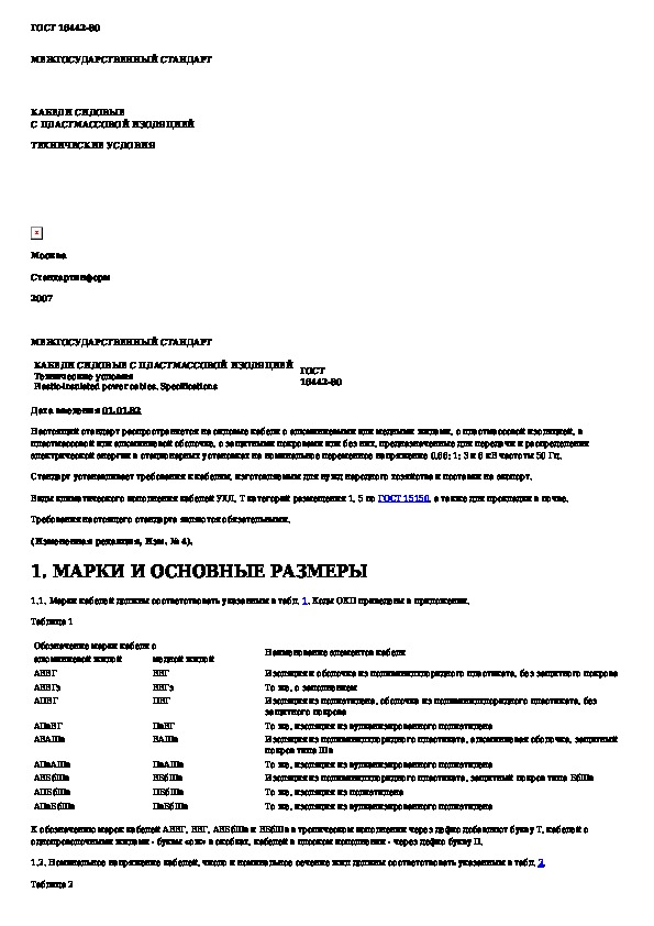ГОСТ 16442-80: Кабели силовые с пластмассовой изоляцией. Технические условия