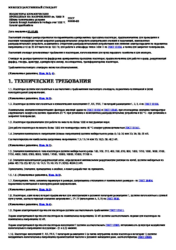 Наша цель состоит в том, чтобы предоставить вам быстрый доступ к содержанию документа Изоляторы керамические проходные на напряжение св. 1000 В. Общие технические условия.
