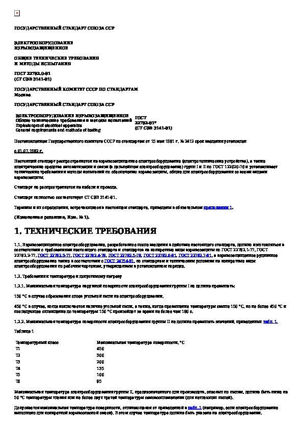 ГОСТ 22782.0-81: Электрооборудование взрывозащищенное. Общие технические требования и методы испытаний