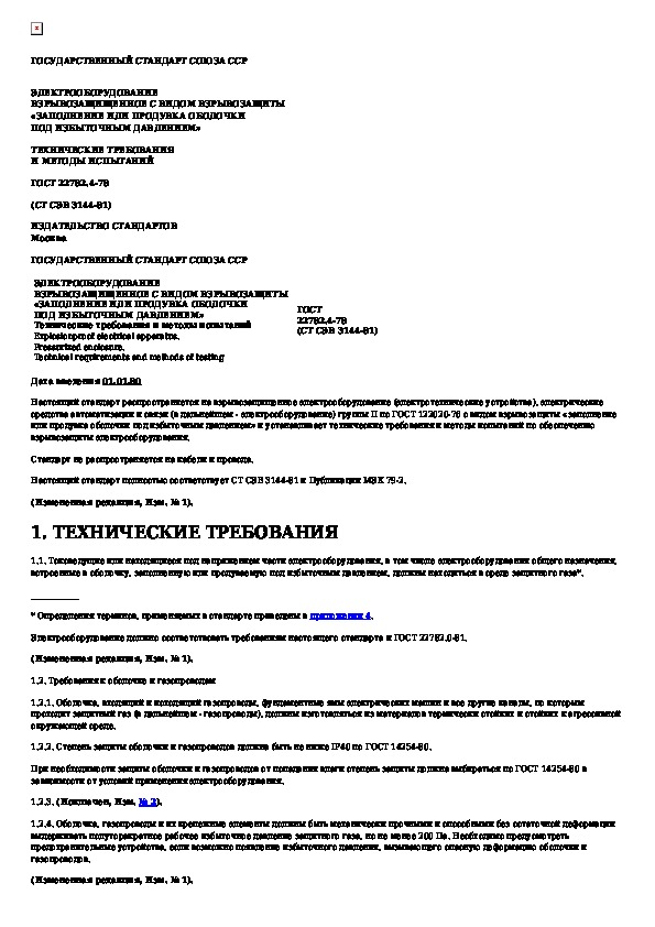 Наша цель состоит в том, чтобы предоставить вам быстрый доступ к содержанию документа Электрооборудование взрывозащищенное с видом взрывозащиты "заполнение или продувка оболочки под избыточным давлением". Техничес.