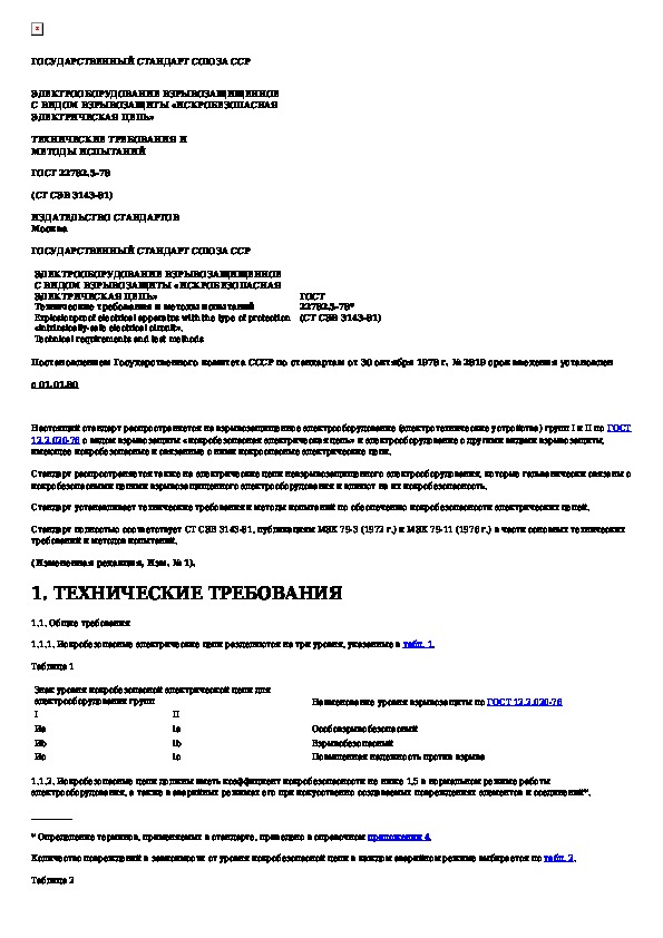 ГОСТ 22782.5-78: Электрооборудование взрывозащищенное с видом взрывозащиты "искробезопасная электрическая цепь". Технические требования и методы