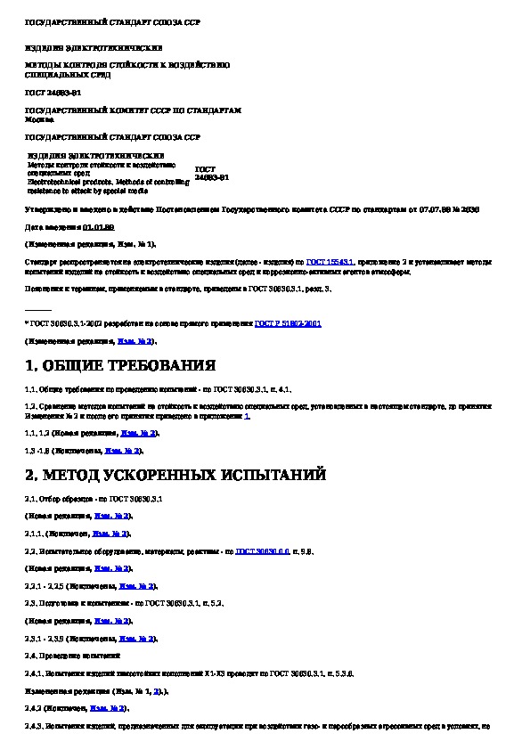 ГОСТ 24683-81: Изделия электротехнические. Методы контроля стойкости к воздействию специальных сред