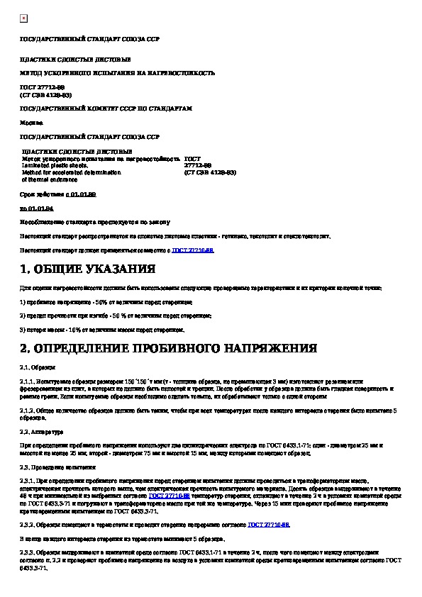 ГОСТ 27712-88: Пластики слоистые листовые. Метод ускоренного испытания на нагревостойкость