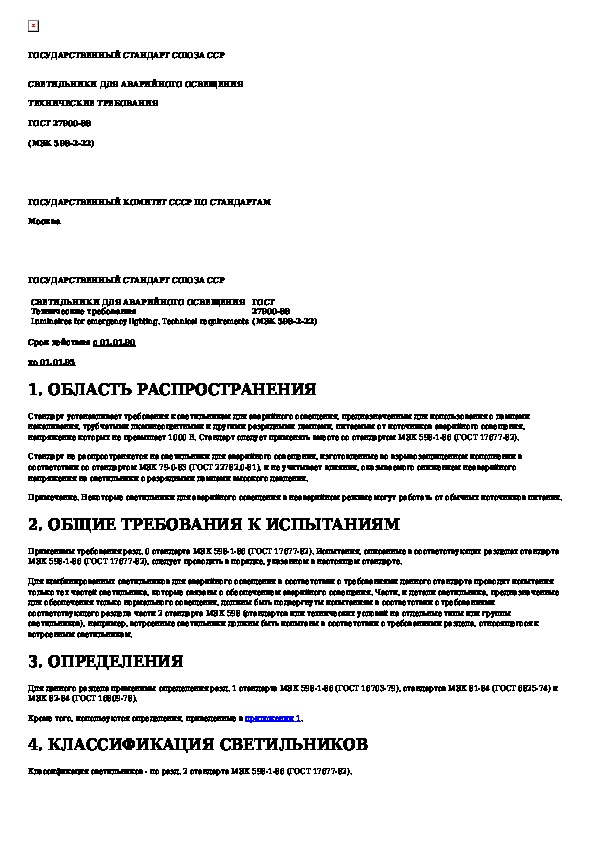 ГОСТ 27900-88: Светильники для аварийного освещения. Технические требования