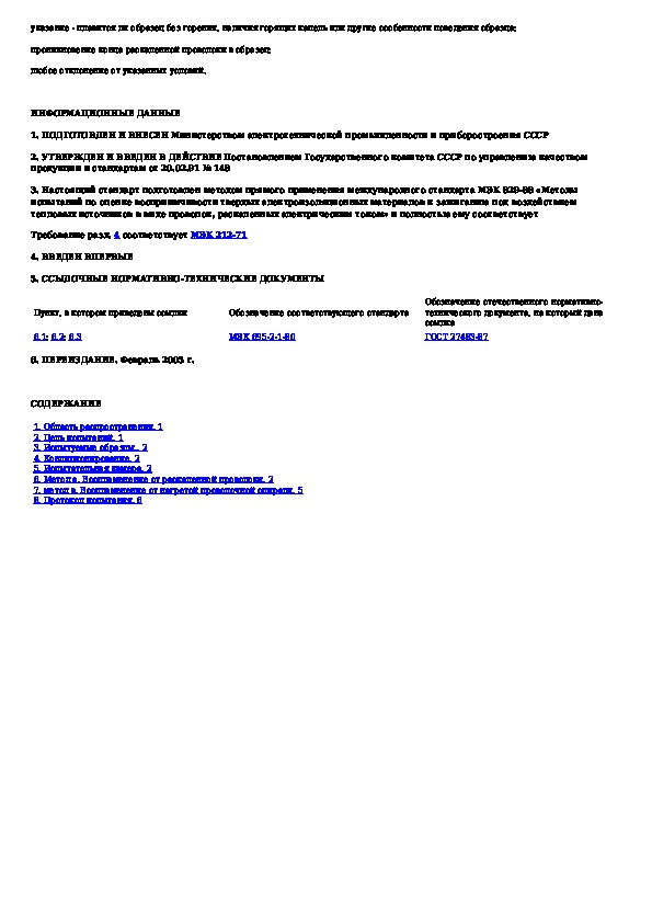 • Просмотр в полноэкранном режиме - легко просмотреть документ Материалы электроизоляционные твердые. Методы испытаний по оценке восприимчивости к зажиганию под воздействием тепловых источни (без загрузки его на свой компьютер).