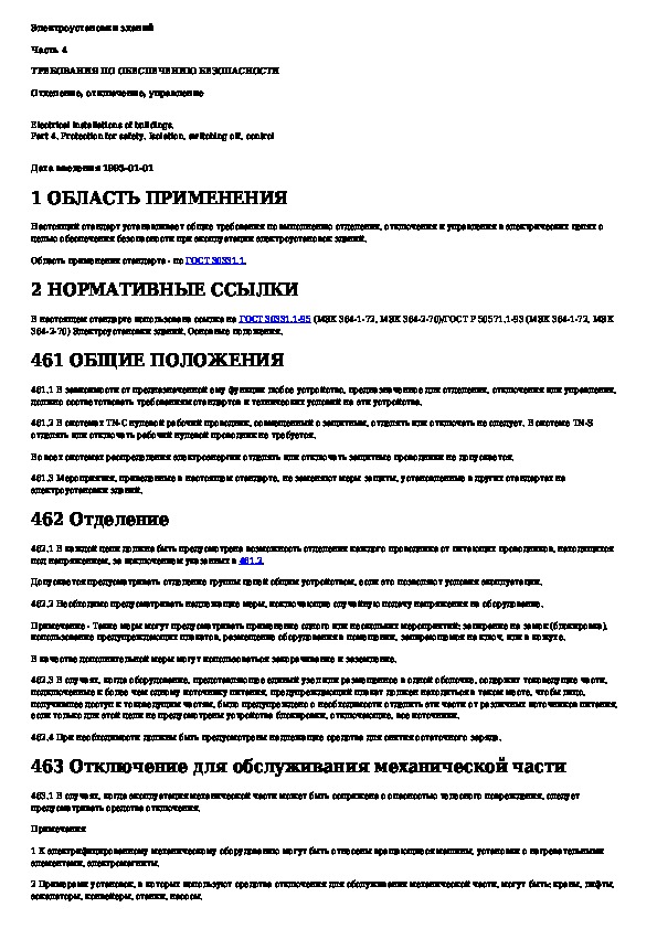 Наша цель состоит в том, чтобы предоставить вам быстрый доступ к содержанию документа Электроустановки зданий. Часть 4. Требования по обеспечению безопасности. Отделение, отключение, управление.