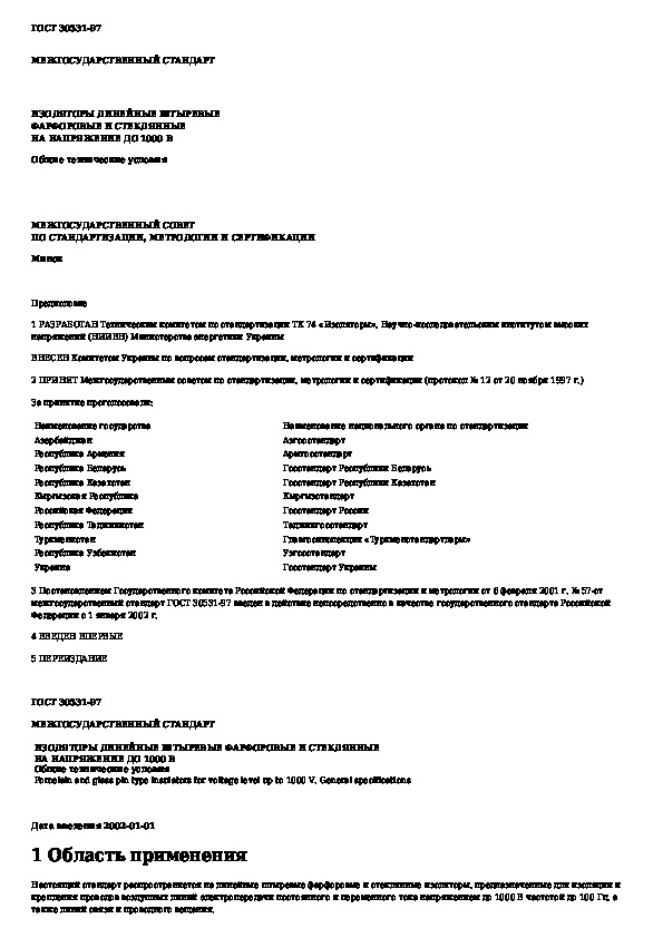 Наша цель состоит в том, чтобы предоставить вам быстрый доступ к содержанию документа Изоляторы линейные штыревые фарфоровые и стеклянные на напряжение до 1000 В. Общие технические условия.