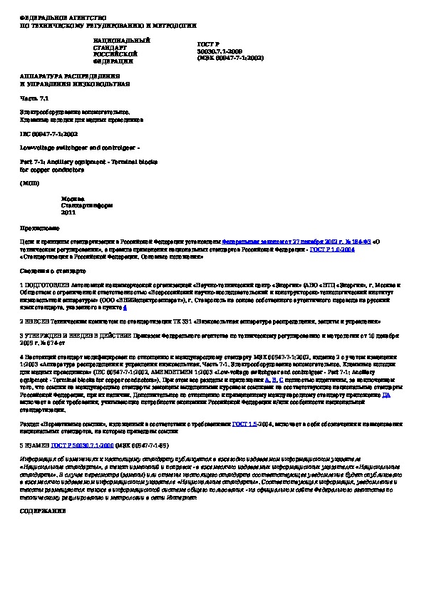 Наша цель состоит в том, чтобы предоставить вам быстрый доступ к содержанию документа Аппаратура распределения и управления низковольтная. Часть 7.1. Электрооборудование вспомогательное. Клеммные колодки для медных .