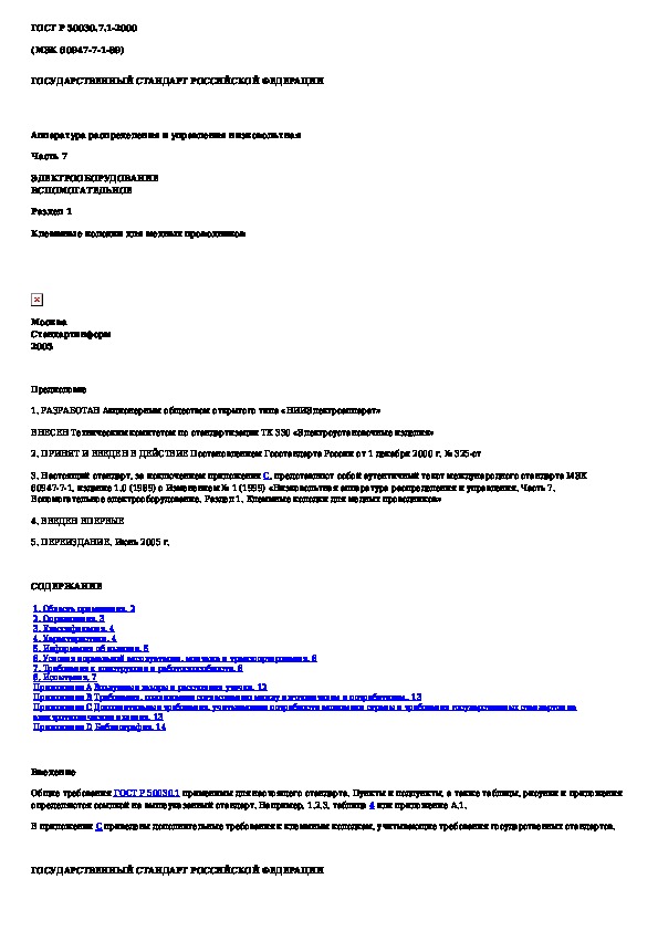 Наша цель состоит в том, чтобы предоставить вам быстрый доступ к содержанию документа Аппаратура распределения и управления низковольтная. Часть 7. Электрооборудование вспомогательное. Раздел 1. Клеммные колодки для .