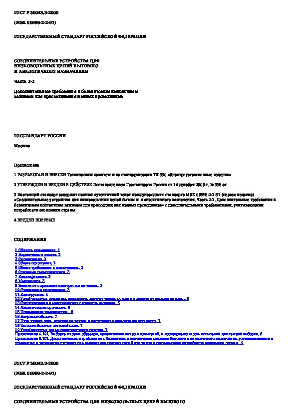 Наша цель состоит в том, чтобы предоставить вам быстрый доступ к содержанию документа Соединительные устройства для низковольтных цепей бытового и аналогичного назначения. Часть 2-2. Дополнительные требования к безв.