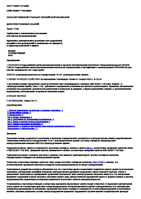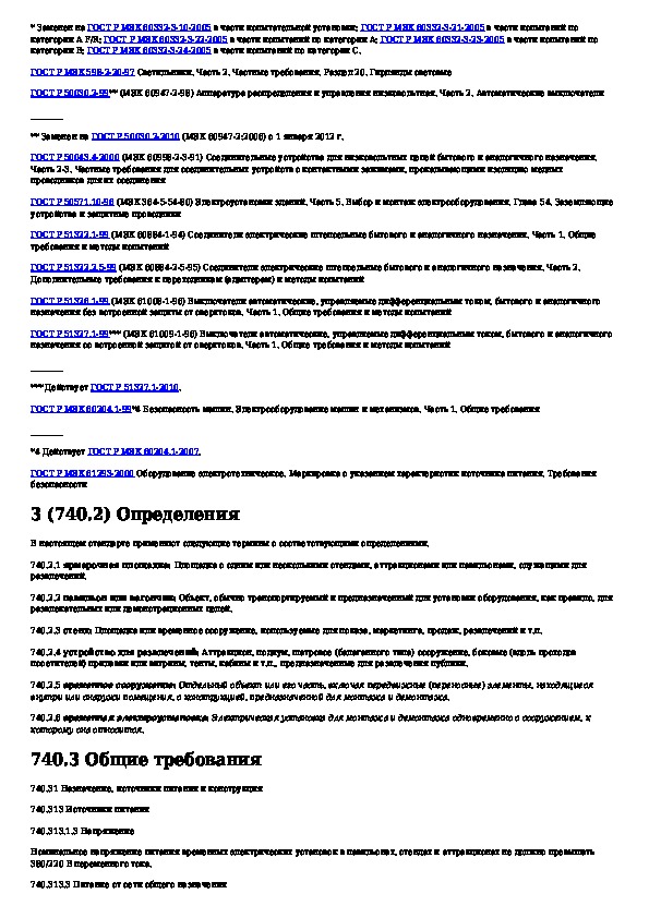 Наша цель состоит в том, чтобы предоставить вам быстрый доступ к содержанию документа Электроустановки зданий. Часть 7-740. Требования к специальным установкам или местам их расположения. Временные электрические устан.
