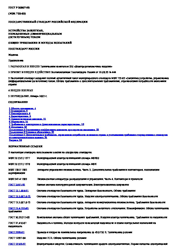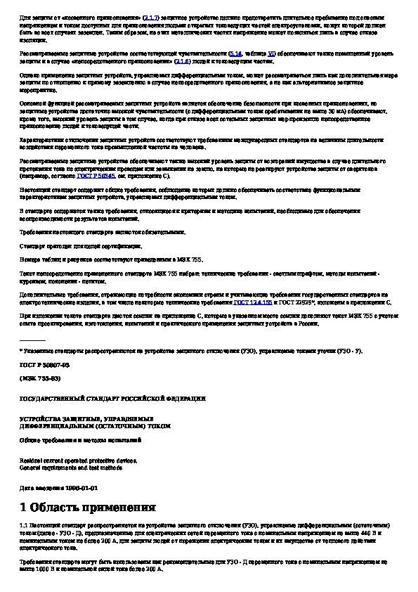 Наша цель состоит в том, чтобы предоставить вам быстрый доступ к содержанию документа Устройства защитные, управляемые дифференциальным (остаточным) током. Общие требования и методы испытаний.