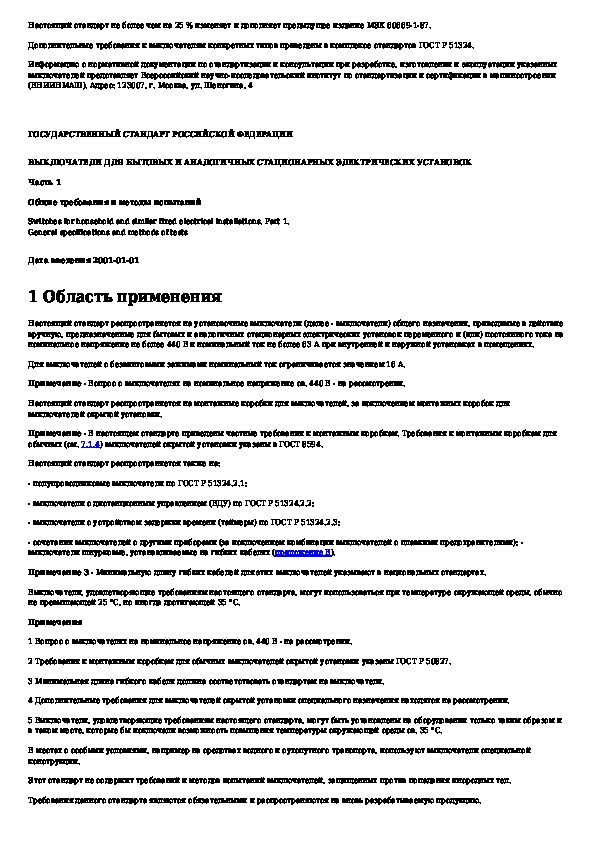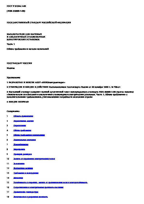 Наша цель состоит в том, чтобы предоставить вам быстрый доступ к содержанию документа Выключатели для бытовых и аналогичных стационарных электрических установок. Часть 1. Общие требования и методы испытаний.