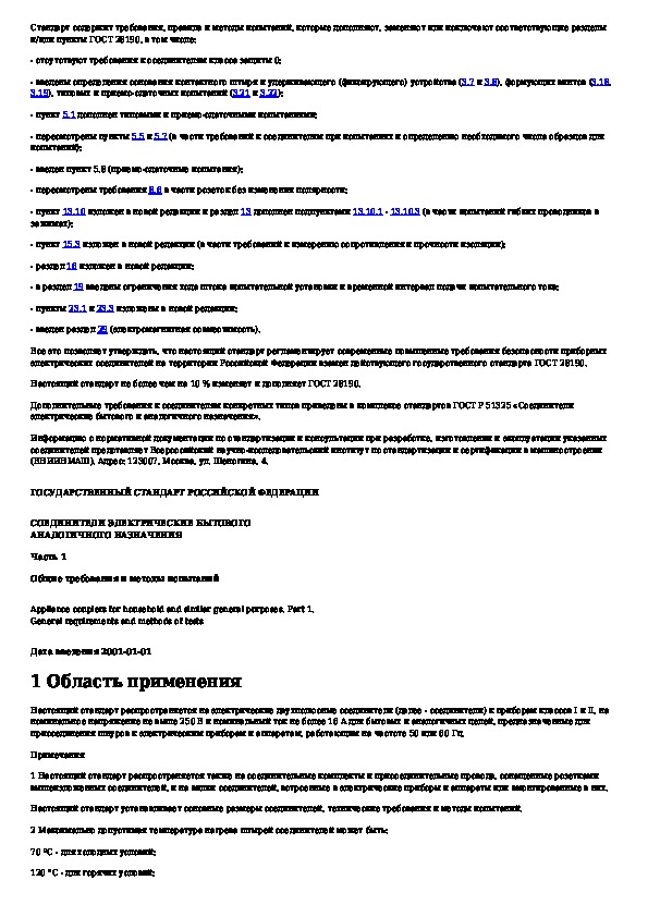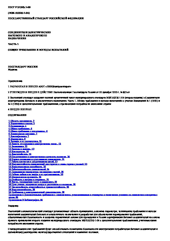 Наша цель состоит в том, чтобы предоставить вам быстрый доступ к содержанию документа Соединители электрические бытового и аналогичного назначения. Часть 1. Общие требования и методы испытаний.