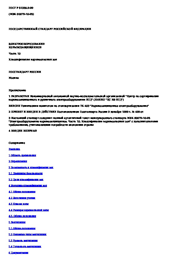 Наша цель состоит в том, чтобы предоставить вам быстрый доступ к содержанию документа Электрооборудование взрывозащищенное. Часть 10. Классификация взрывоопасных зон.