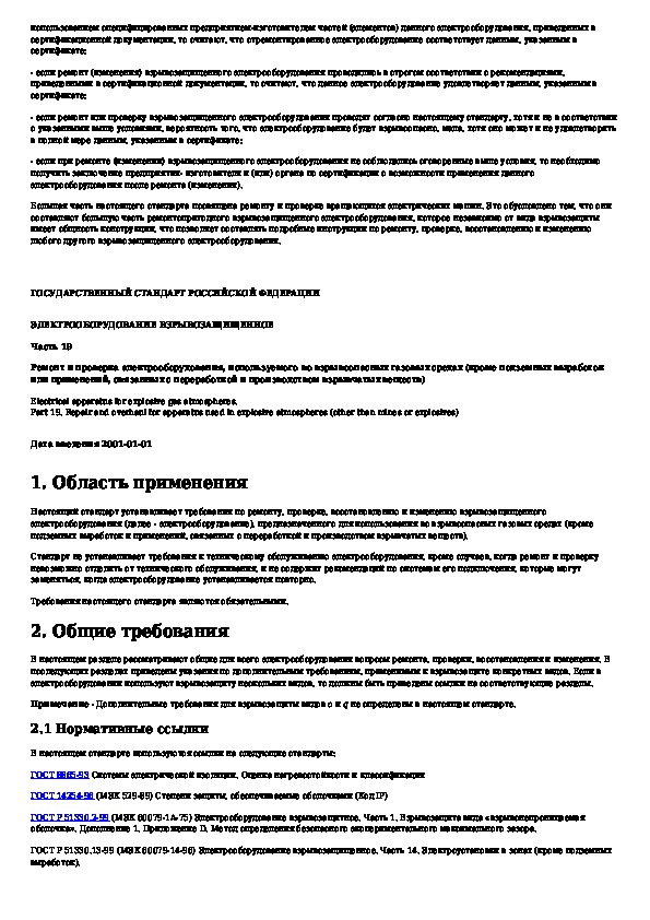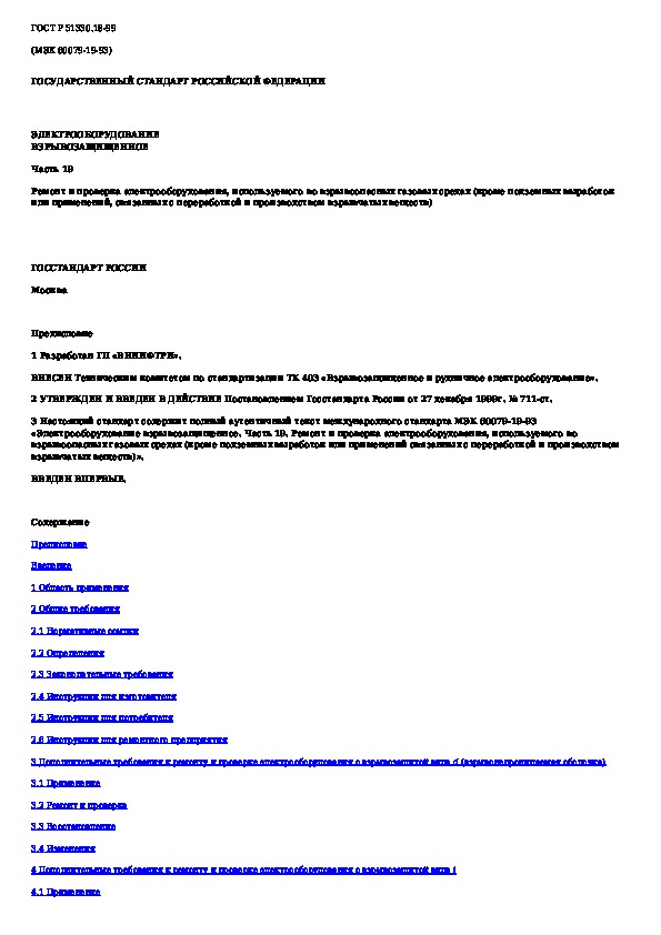 Наша цель состоит в том, чтобы предоставить вам быстрый доступ к содержанию документа Электрооборудование взрывозащищенное. Часть 19. Ремонт и проверка электрооборудования, используемого во взрывоопасных газовых ср.