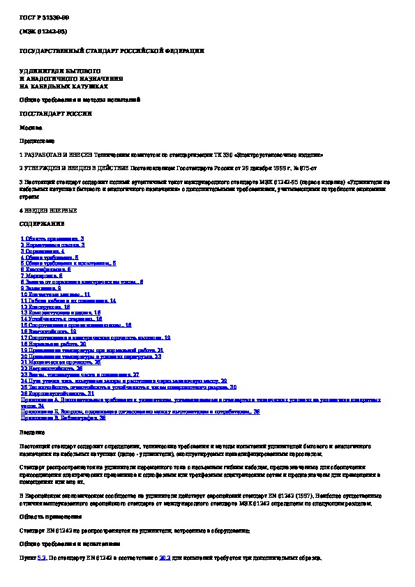 • Просмотр в полноэкранном режиме - легко просмотреть документ Удлинители бытового и аналогичного назначения на кабельных катушках. Общие требования и методы испытаний (без загрузки его на свой компьютер).