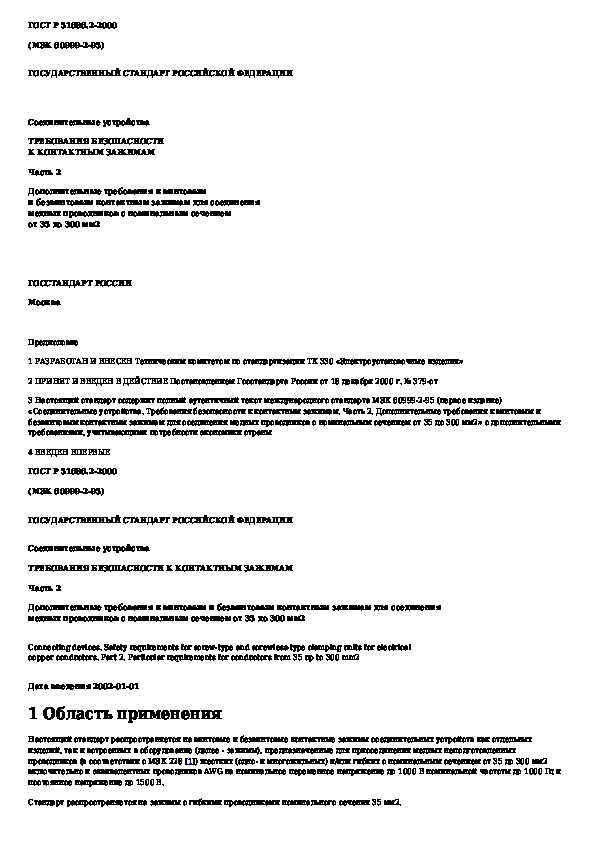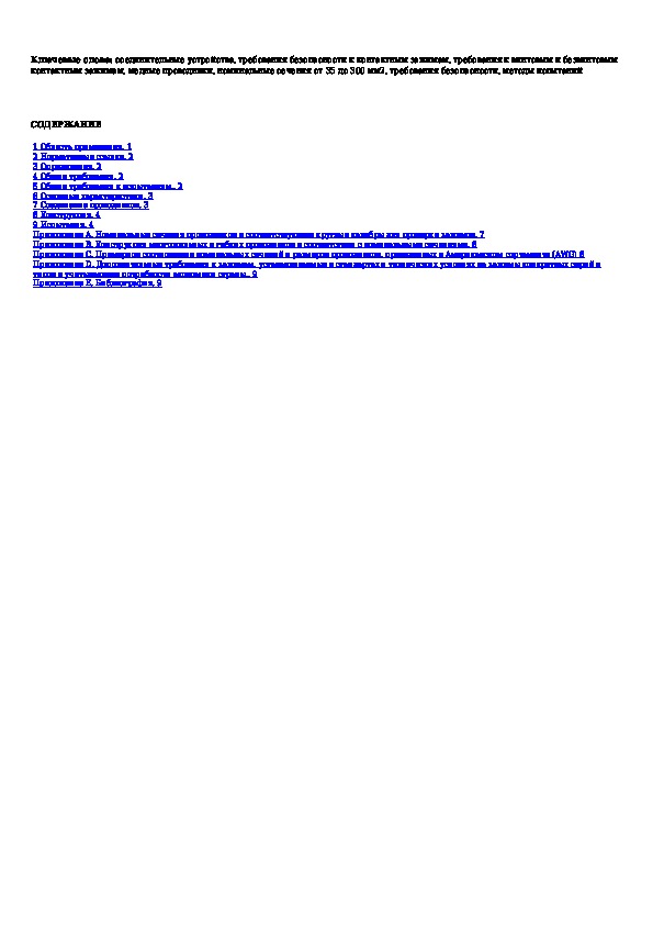 Наша цель состоит в том, чтобы предоставить вам быстрый доступ к содержанию документа Соединительные устройства. Требования безопасности к контактным зажимам. Часть 2. Дополнительные требования к винтовым и безвинто.