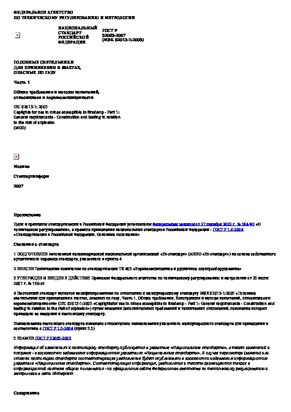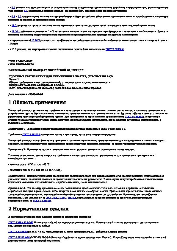 • Просмотр в полноэкранном режиме - легко просмотреть документ Головные светильники для применения в шахтах, опасных по газу. Часть 1. Общие требования и методы испытаний, относящиеся к взрывоза (без загрузки его на свой компьютер).