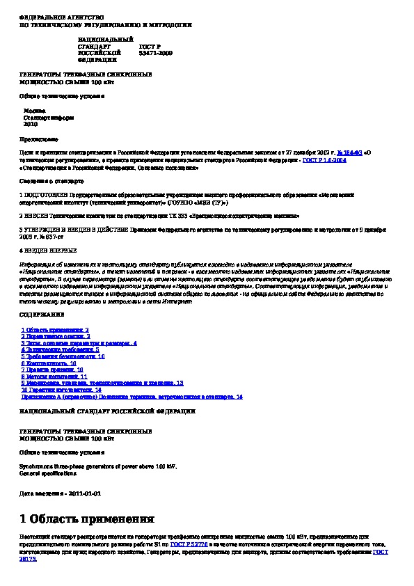 Наша цель состоит в том, чтобы предоставить вам быстрый доступ к содержанию документа Генераторы трехфазные синхронные мощностью свыше 100 кВт. Общие технические условия.