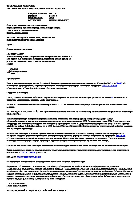 ГОСТ Р 54127-2-2011: Сети электрические распределительные низковольтные напряжением до 1000 В переменного тока и 1500 В постоянного тока. Электробезопасн