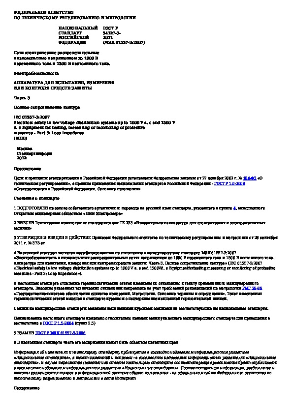 ГОСТ Р 54127-3-2011: Сети электрические распределительные низковольтные напряжением до 1000 В переменного тока и 1500 В постоянного тока. Электробезопасн
