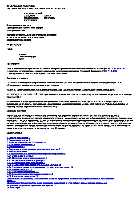 Наша цель состоит в том, чтобы предоставить вам быстрый доступ к содержанию документа Электрическая энергия. Совместимость технических средств электромагнитная. Нормы качества электрической энергии в системах элек.