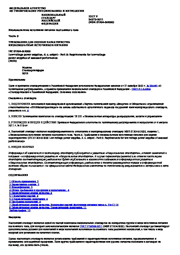 ГОСТ Р 54373-2011: Низковольтные источники питания постоянного тока. Часть 6. Требования для оценки характеристик низковольтных источников питания
